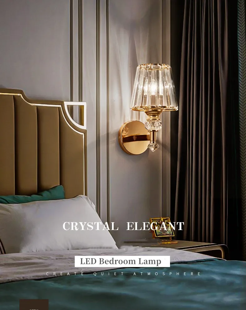Bedside LED Wall Lamp Crystal Shade Modern Indoor Lighting Fixtures Bedroom Living Room Light Home Decor 9W